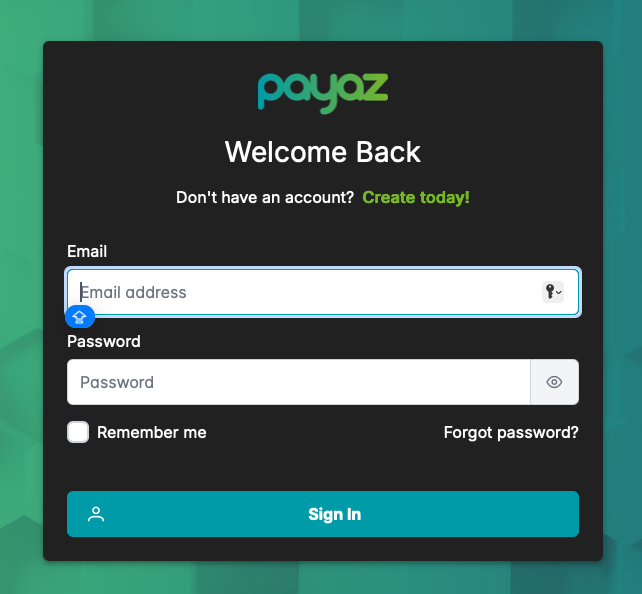 Step 1: Start by logging on to the online portal at https://app.payaz.software/signin using the registered email address and password.