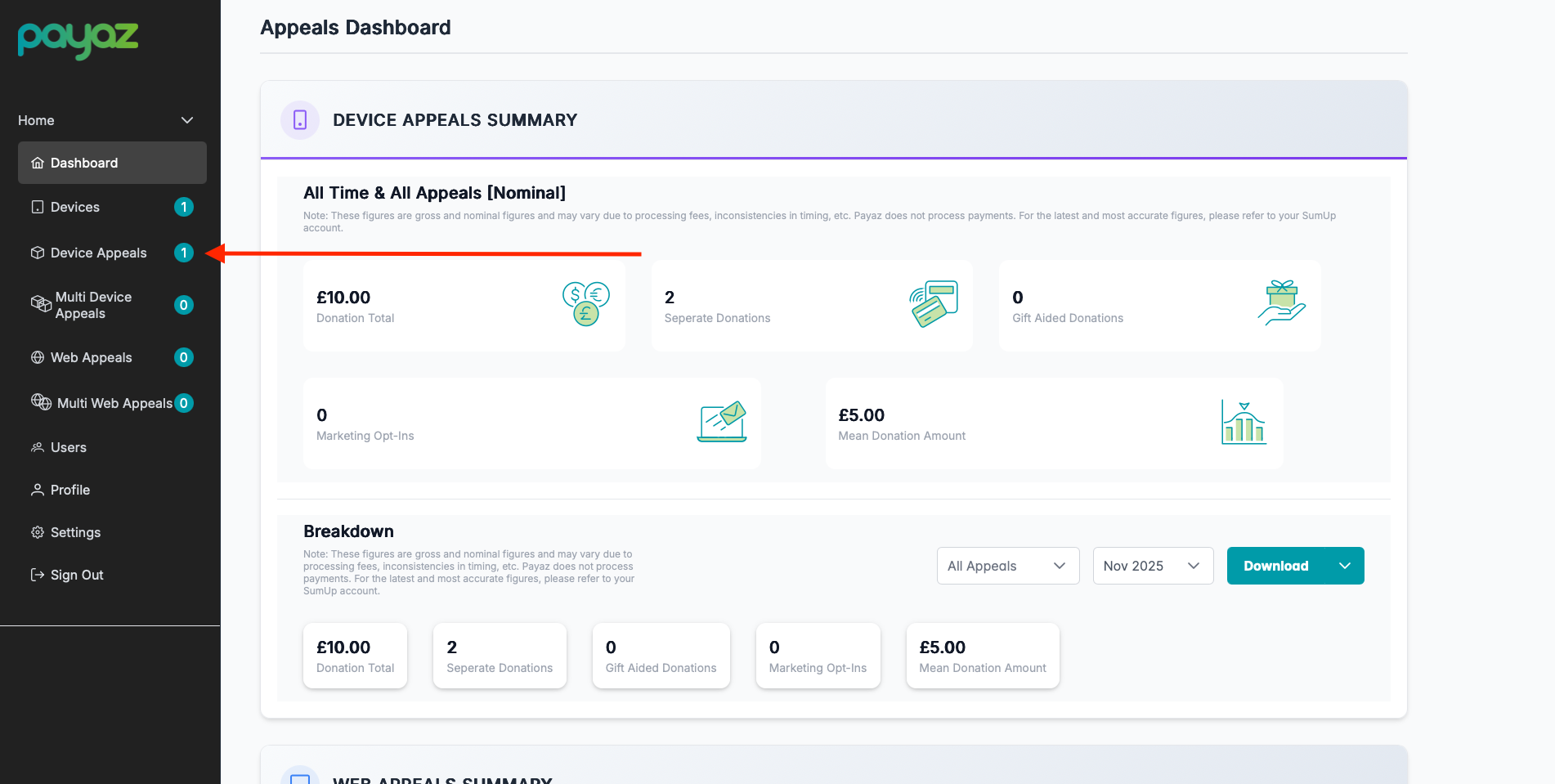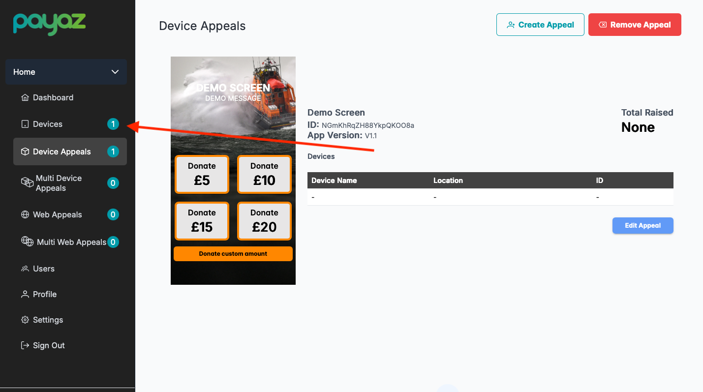 Step 6: Once you have pressed "Save" you will be redirected back to the device appeals page. Next select the devices option in the navigation bar on the left hand side to update the screen on your device.