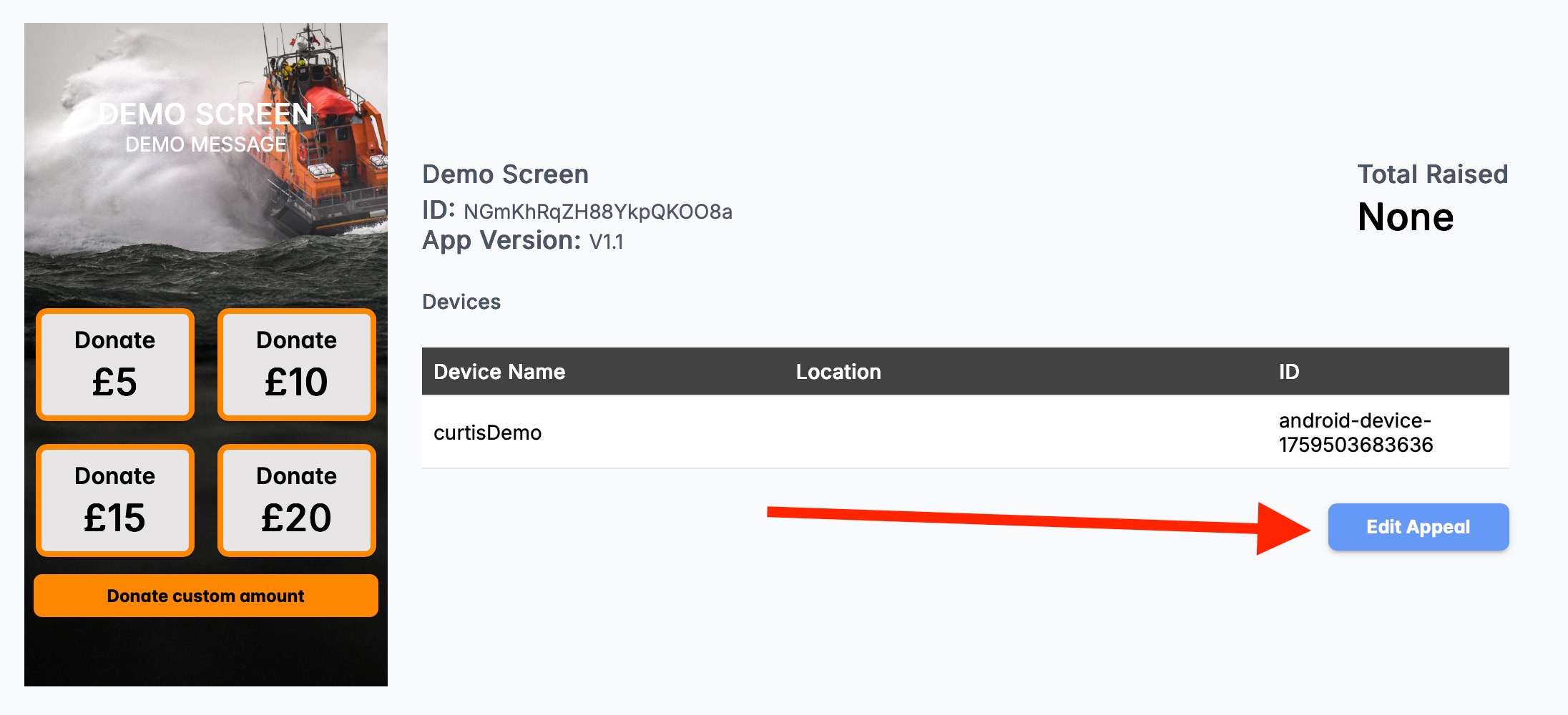 OR if you have already created an appeal and want to turn Gift Aid simply press the blue button labeled "Edit Appeal"