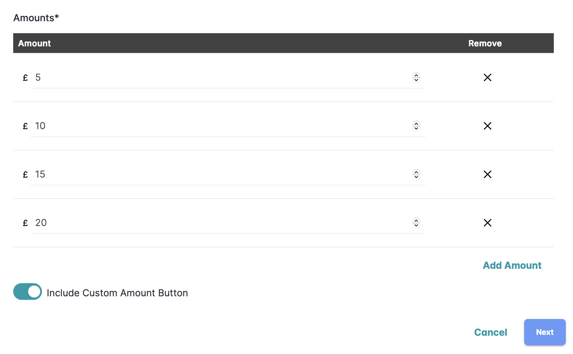 Step 4: Navigate to section 2 and scroll to the bottom where you will see a section labelled "Amounts". From here you can decide what pre defined amounts you want to be visible on the screen.