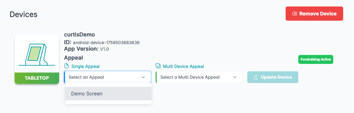 Step 7: From here choose the device you wish to assign the appeal to and chose from the single appeal drop down mean and select the appeal that you have just created or edited. Once you have selected the one that you want all that's left to do is to press the blue button labeled "Update Device".